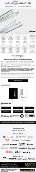 Selux has a wide offering of high-performance optics for the most demanding interior applications. They excel by offering options for general illumination, grazing, indirect batwing for uniform ceilings, wall washing, and perimeter systems to name a few. Their Technical Applications Team can assist in finding or modifying an optic to meet any challenge.