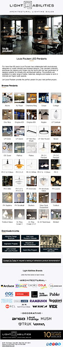 For more than 80 years Louis Poulsen has collaborated with revolutionary designers to create relevant and timeless designs. Their pendant collection embraces the classics and forges into the future with the next generation of designs suitable for virtually any architectural setting. The products are available in a wide range of styles, materials, designs and scales to work in intimate and hyper scale spaces.