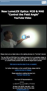 The new M20 and M40 Optic from Lighting Services Inc is a proprietary design to control the field angle while maintaining CBCP.