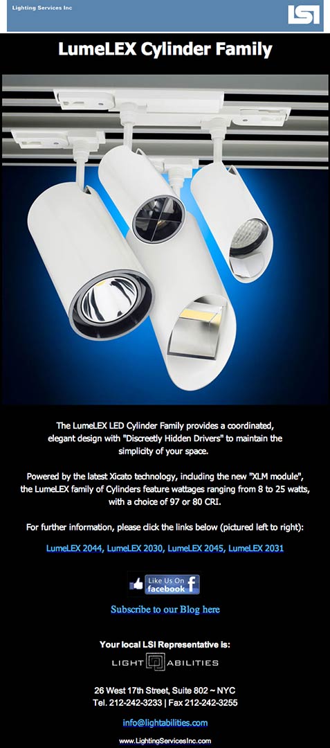Powered by the latest Xicato technology, the LumeLEX LED Cylinder Family provides a coordinated, elegant design with “discreetly hidden drivers” to maintain the simplicity of your space.