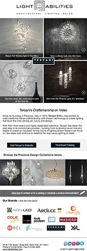 Precious Design Collection Videos Email campaign: March 1st, 2017VIEW EMAILFeatured Videos:Watch the flowing light of the Mizu Take a closer look into the Core Get lost down the randomized path of the Doodle See how the Sharpei gets it’s “wrinkles” Post navigationPreviousPrevious post:Louis Poulsen’s LED Surface Mounted CollectionNextNext post:Louis Poulsen’s LED Pendant Collection